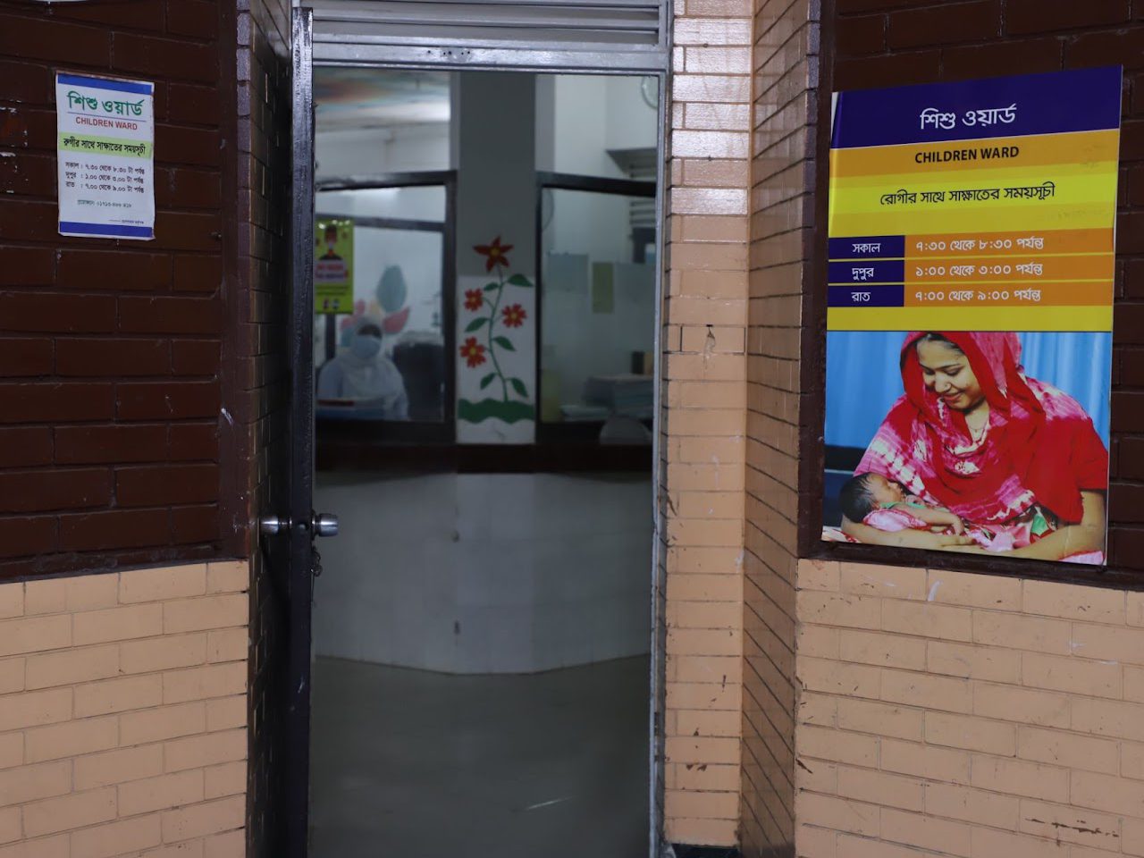 The child care unit indoor is located on the 1st floor of the hospital. Newborn resuscitation up to endotracheal intubation management of every newborn just after delivery. We manage newborn baby different condition such as: preterm (36 to 28 weeker), very low birth weight baby (1500 gm), severe perinatal asphyxia, neonatal convulsion, hypoglycemia (Infant of diabetic mother), severe respiratory distress (which baby not needed to ventilation), meconium aspiration syndrome(severe), congenital pneumonia, neonatal sepsis, necrotizing esterocolitis (NEC) stage IV, neonatal jaundice.